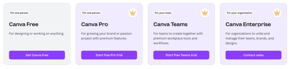 Canva tilbyr flere abonnementer, inkludert: