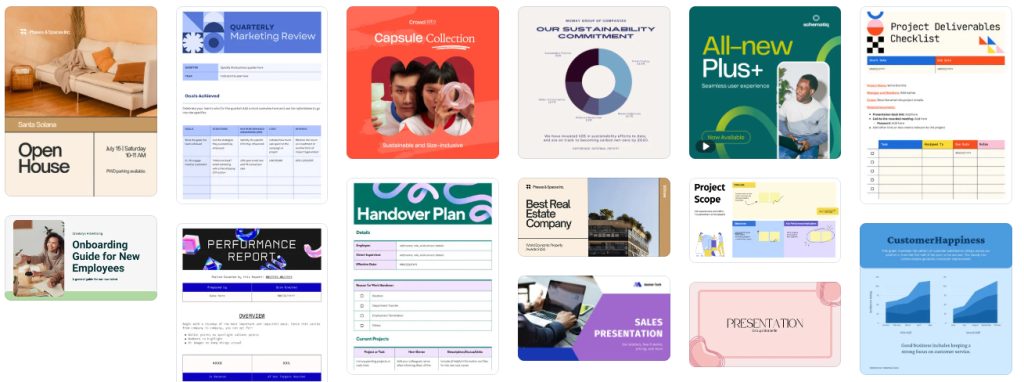 Canva har et stort utvalg av maler som kan hjelpe deg med å komme i gang med designene dine. For å finne maler, kan du:
