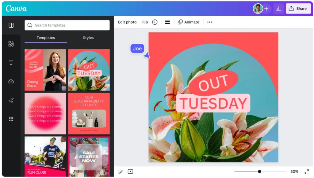 - Canva lar deg dele design direkte på sosiale medier.