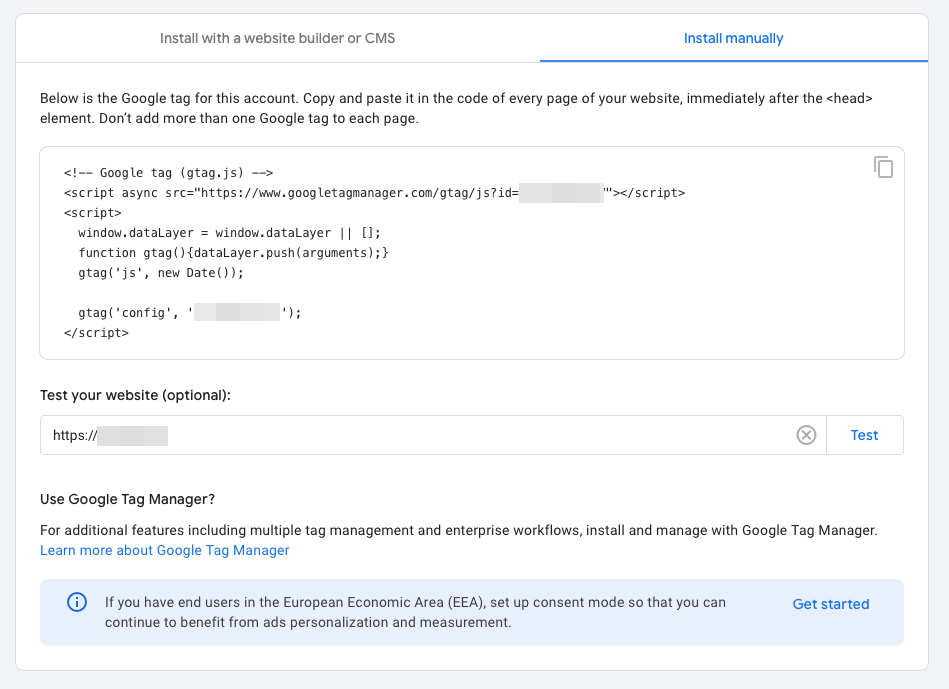 Etter å ha opprettet en konto, er neste steg å koble GA til nettstedet ditt. Dette gjøres ved å kopiere sporings-IDen fra Analytics-kontoen din og legge den til i HTML-koden til nettstedet ditt. Alternativt kan du bruke Google Tag Manager for en mer automatisert tilnærming.